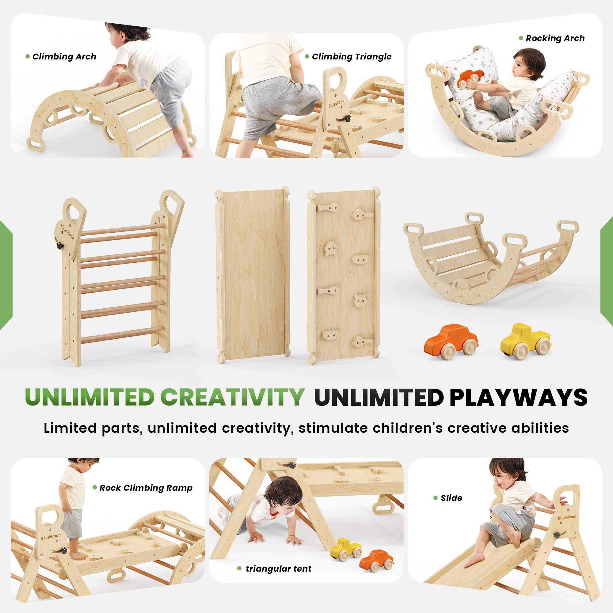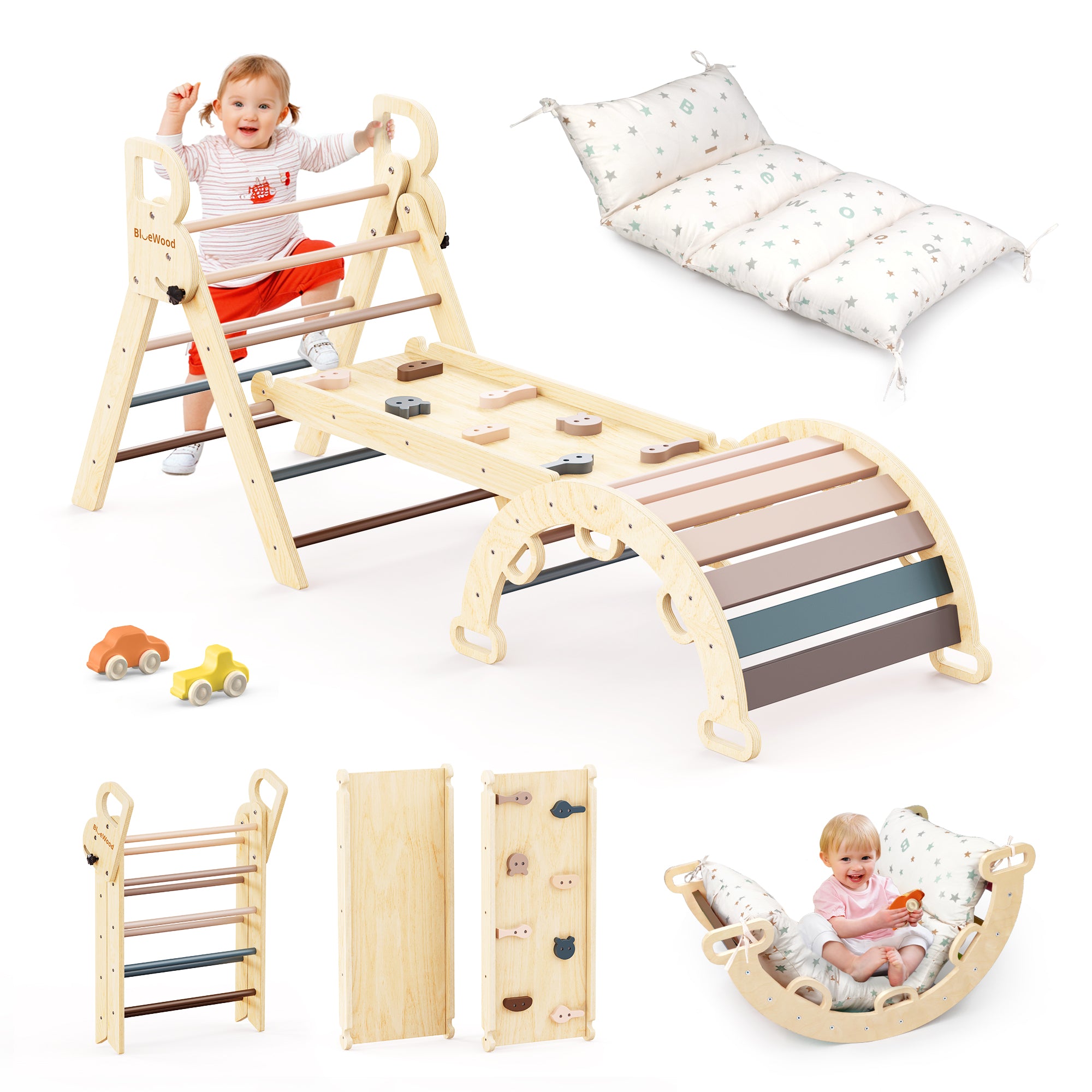 Totsicle- BlueWood® Pikler Triangle Playset with Cushion *Rainbow