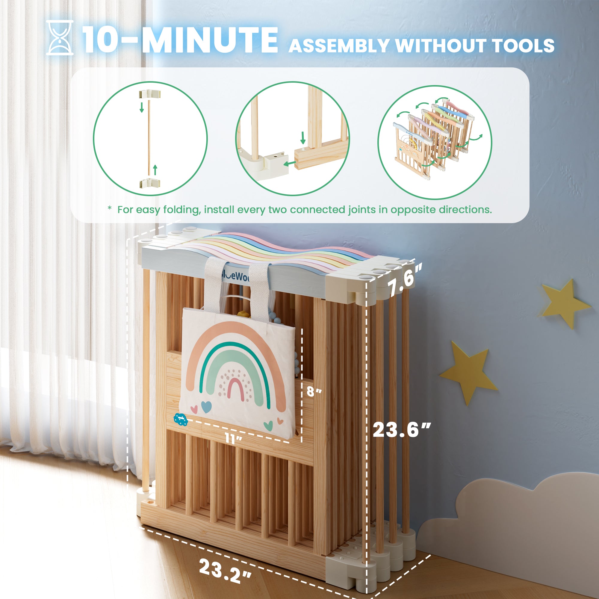 Halo – BlueWood® Wooden Baby Playpen Without Door, Foldable, Colorful Dream, 8 Pcs