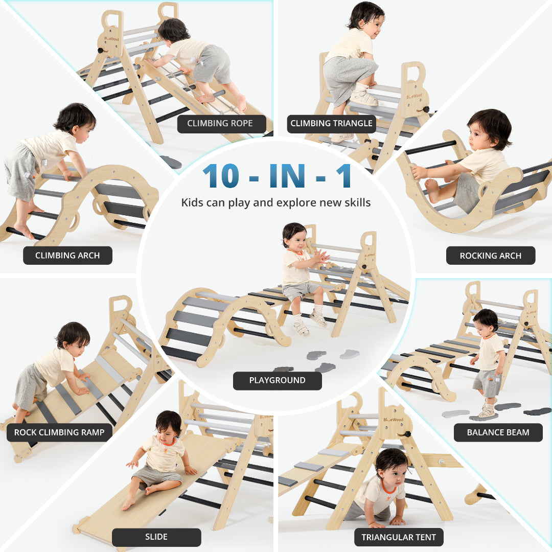 Ramble- Juego triangular Pikler BlueWood® con escalera de cuerda *Tono madera