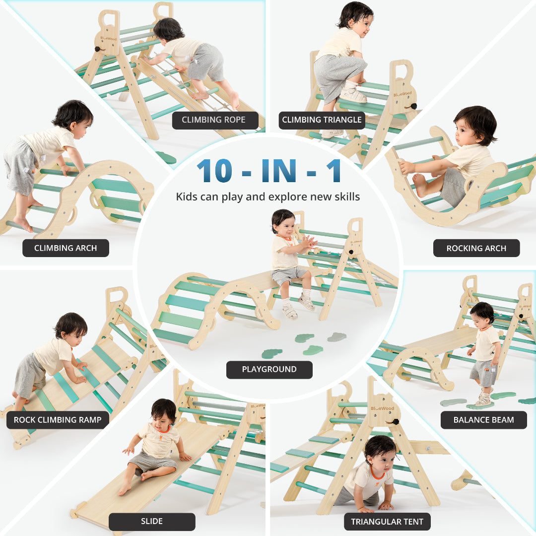 Ramble- Juego triangular Pikler BlueWood® con escalera de cuerda *Follaje
