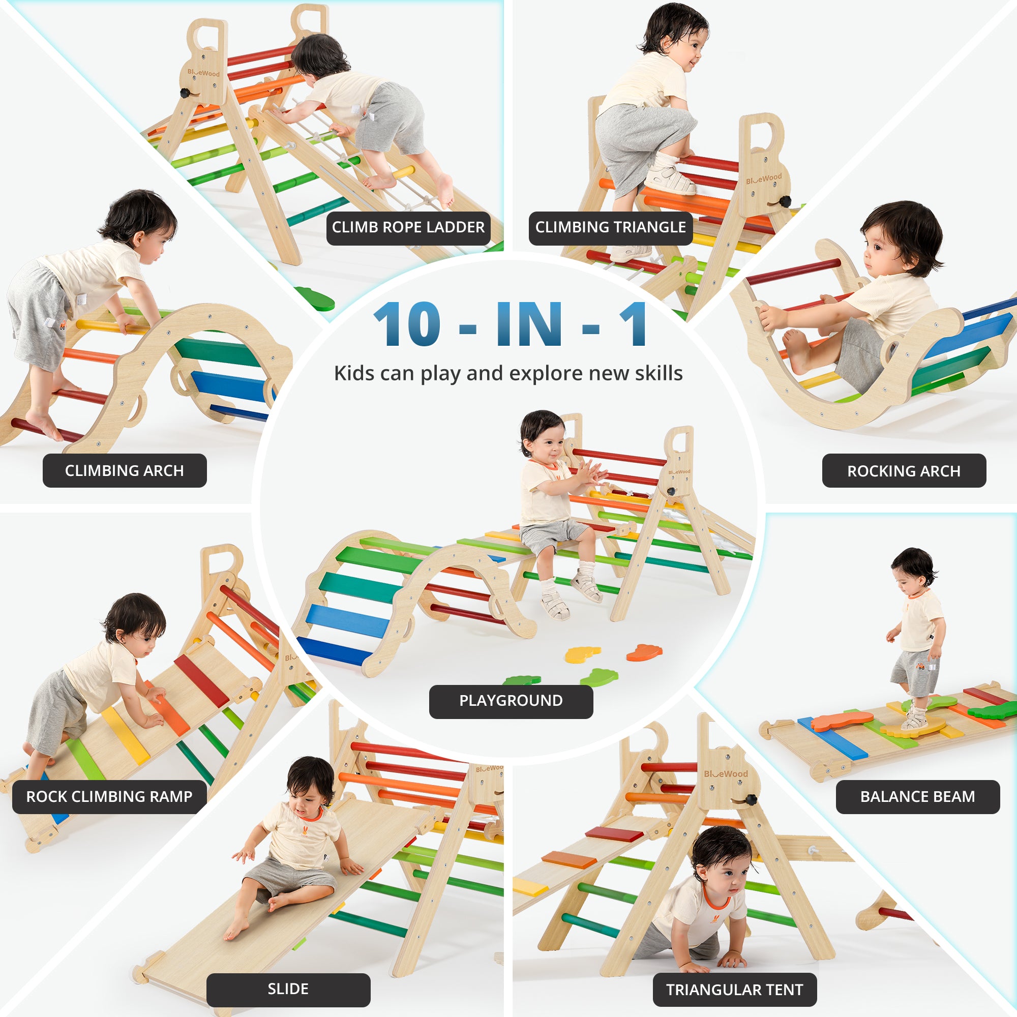 Ramble- Juego triangular Pikler de BlueWood® con escalera de cuerda *Arcoíris